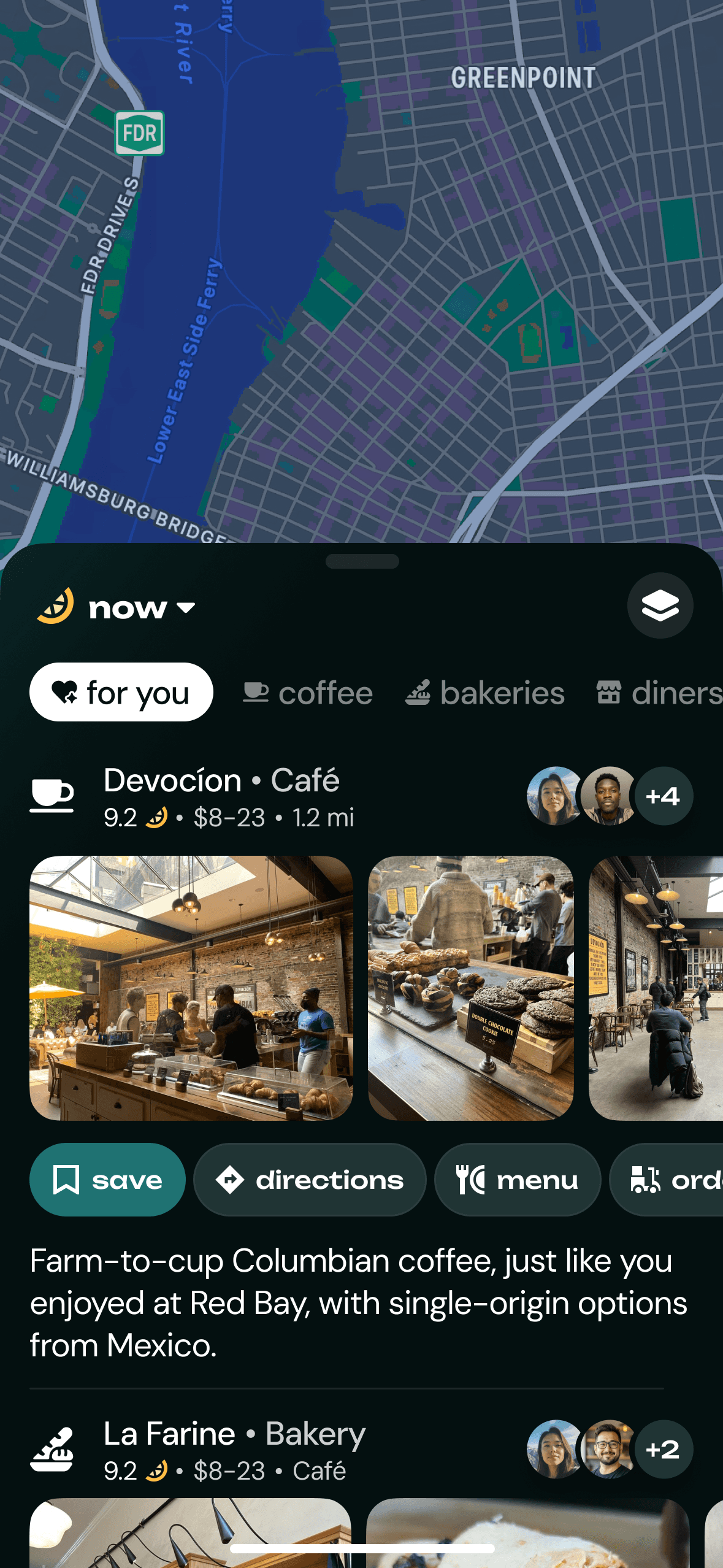 Zest auto-maps everywhere you’ve eaten, recommends spots you’ll love, and surfaces your friends’ favorites globally.